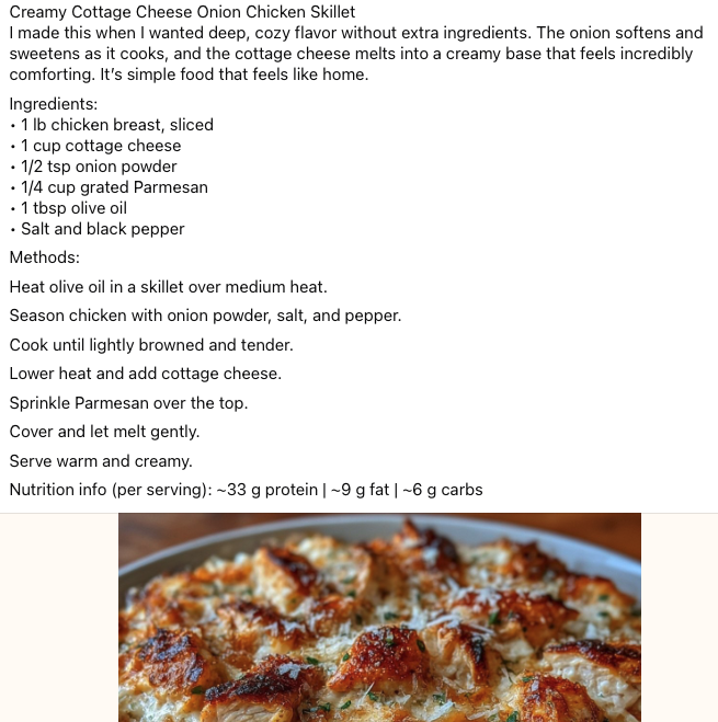 Creamy Cottage Cheese Onion Chicken Skillet