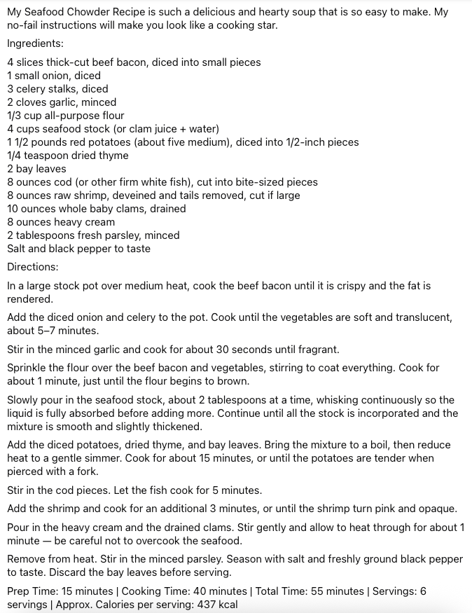 Seafood Chowder